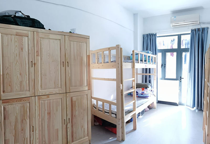 2.整潔的生活環(huán)境。學生公寓武賁閣與陽彩軒擁有現(xiàn)代化的生活設施。每間宿舍住4-6人,擁有雙套衛(wèi)浴系統(tǒng),配備獨立洗衣機、空調(diào)。采用全實木家具床柜,健康無污染。聘請專業(yè)生活老師,科學管理日常起居。