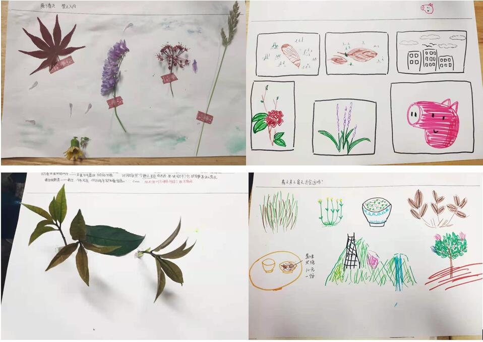 同學(xué)們帶回來(lái)的東西五花八門(mén),有小草、樹(shù)葉、落花、樹(shù)枝、泥土等等,還有帶小動(dòng)物回來(lái)的,螞蟻、蜘蛛、蛹!心理老師看著爬來(lái)爬去的蜘蛛笑:“你要把它養(yǎng)活哦!”學(xué)生:“老師我下課就把它放了!”更多的同學(xué)選擇將春天與感悟裝在腦海里帶回教室~